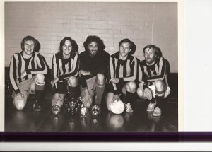 This evening I spoke with Anne Gorman; she had just returned from Inverness where our boy is incarcerated. The round trip from her house in Skye to Inverness by bus is 350 miles; a journey that she makes twice per week. The news of Tony is good and not so good. The good part is that his spinal tumor situation was overplayed by the doctors and, in fact, it is slow-growing, and the “weeks to live” diagnosis has been revised to indefinite. The not-so-good news is that the medication that he has taken has affected his mind and he suffers fits of depression and aggression and as a result he is confined to a hospital in Inverness for his own safety and that of others. The prognosis about his mental problem is not good, but then neither was the one of his spinal cancer and that has been revised. Let us hope that the British National Health system that has kept Stephen Hawking alive until now can turn up trumps for Tony. When I spoke to him in late March he gave me carte blanche to inform the world of his conditions, and so I do this knowing that his friends want to hear of his progress. After my earlier Tony posting Bruce Craig sent me a photo of the Manchester University Chemistry 5-a-side football team who, in about 1970, had won the inter-university cup. I share this with you, with thanks to Bruce.