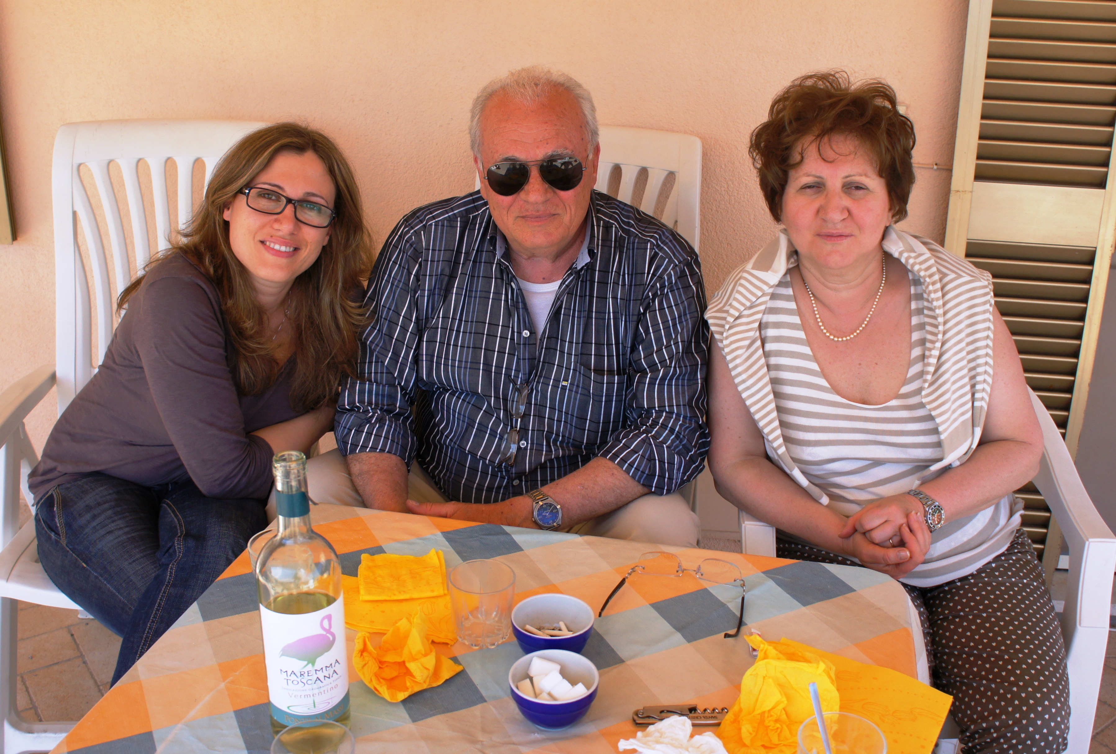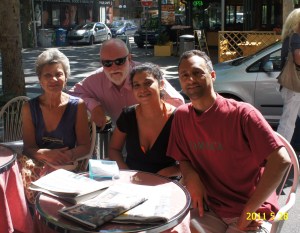 Herta Mulazzani, her son Claudio, his friend Ouissal, and yours truly taking coffee on the street after lunch at Herta's home in Rimini.