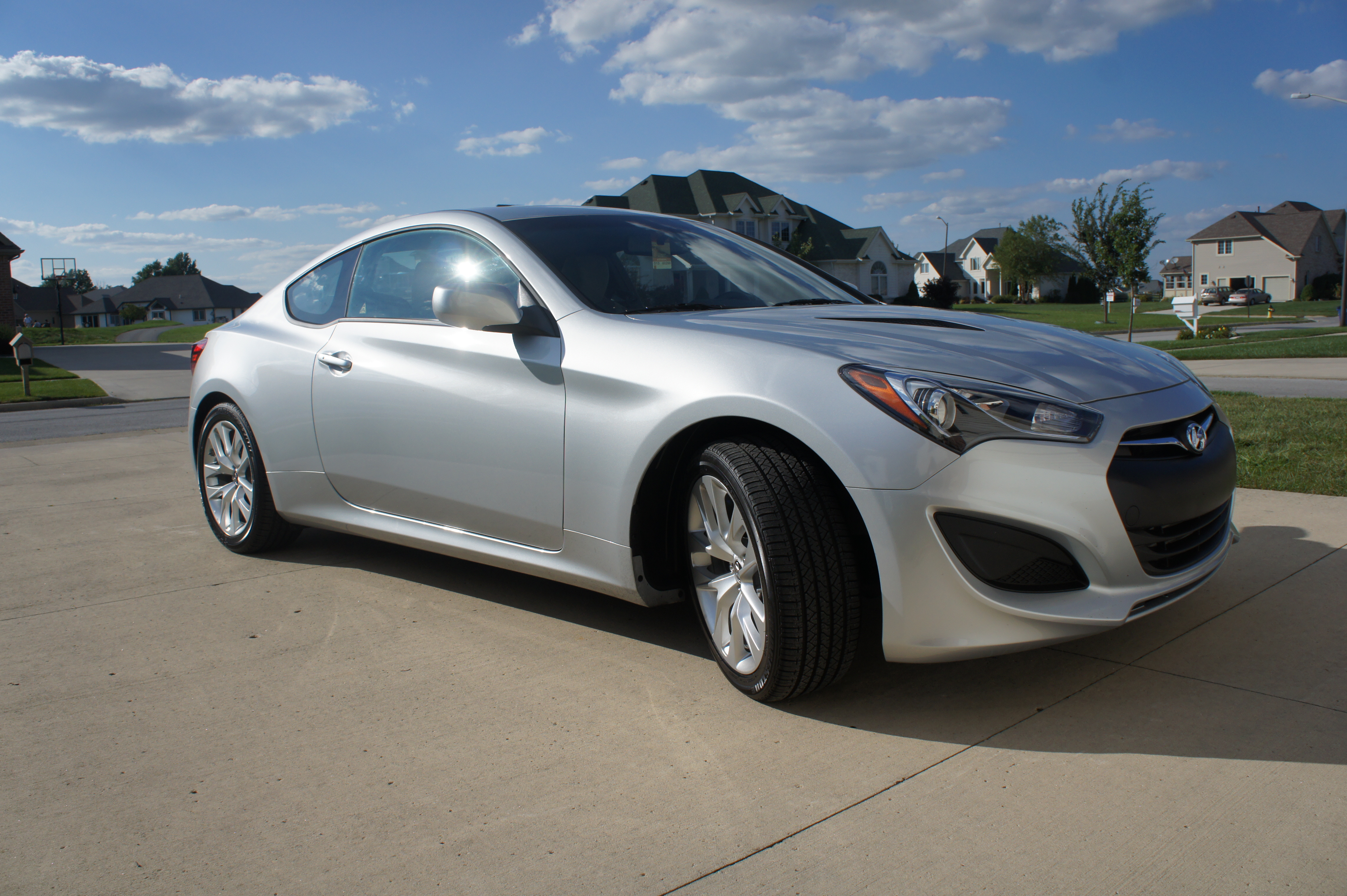 I did not have to go far before I had fallen in love again, this time with a 2013 Hyundai Genesis Coupe, beautiful styling, modern comfort and amazing performance from a 2 liter, turbo-charged engine. Here she is perched on my driveway for your admiration.
